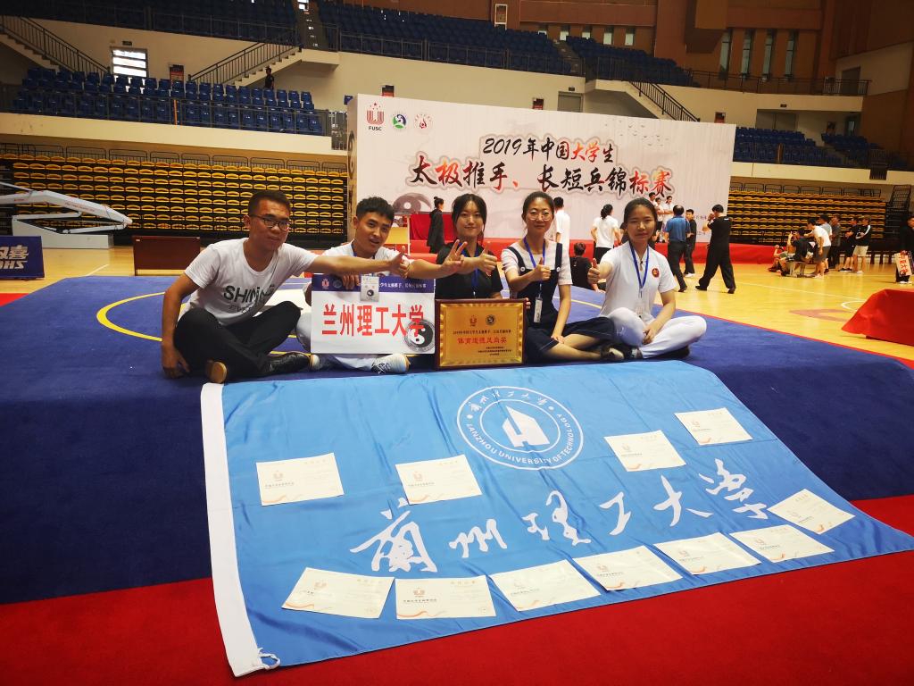 兰州理工大学体育部姚剑文老师带领太极协会队员首次组队参加了本次比赛。经过三天紧张激烈的角逐,我校太极推手代表队在竞技推手比赛项目中袁洋浩获男子75kg级第三名,吕鹏程获男子70kg级第五名,朱嘉琪获女子56kg级第五名;在活步推手套路比赛中袁洋浩、吕鹏程获男子组第三名,袁洋浩、袁梦琪获混双组第二名,袁梦琪、朱嘉琪获女子组第二名。张小璐、朱嘉琪、袁梦琪三人获女子组轻量级团体赛第三名。