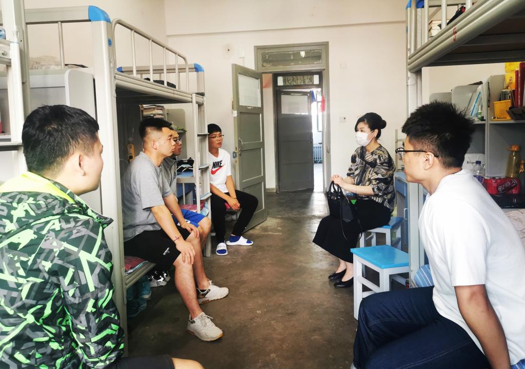 6月17日上午,学工部副部长张艳老师与相关负责老师深入学生宿舍走访了体育部2019级研究生。